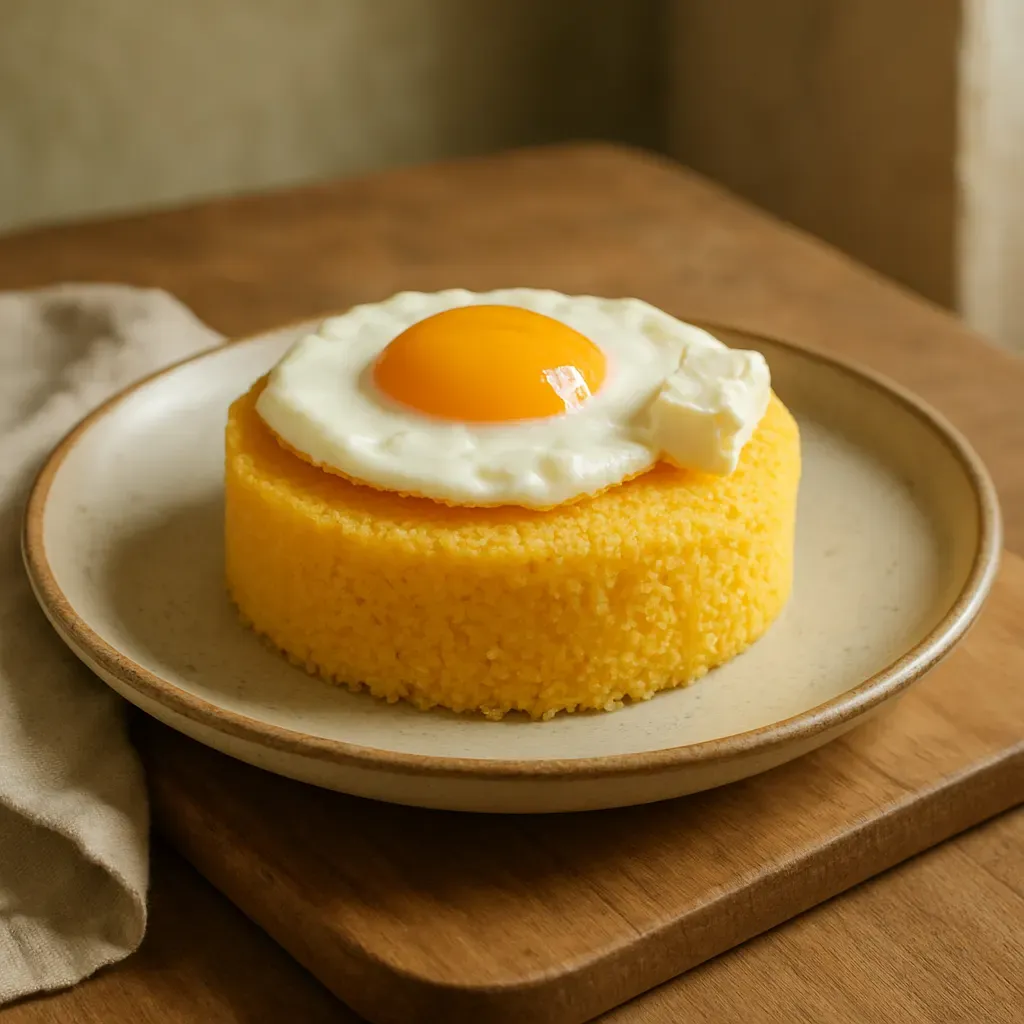 Uma porção de cuscuz (100g) + 1 ovo mexido (70 kcal) = cerca de 205 kcal. Se fritar o ovo com um fio de óleo, sobe para ~230 kcal. É uma das refeições mais completas e baratas do Nordeste.
