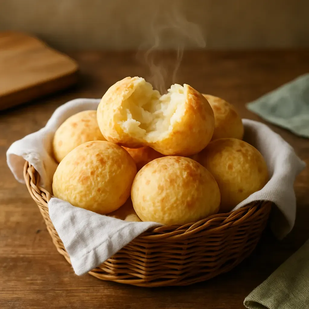 Não, a receita tradicional usa polvilho (fécula de mandioca), não farinha de trigo. É uma das poucas receitas de 'pão' brasileiras naturalmente sem glúten — por isso virou refúgio de quem tem doença celíaca ou intolerância.